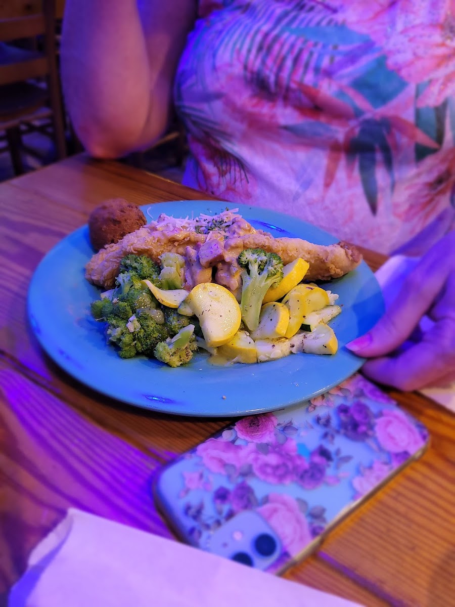 - From the Fryer: Dive into the Fried Gulf Shrimp Dinner, crispy Fried Grouper Dinner, or the catch of the day, all served golden brown and bursting with flavor.